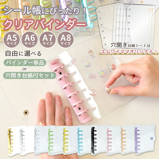 ◆新サイズ追加◆ 【予約販売】シール帳 A8 A7 A6 A5 A4 クリア カラフル バインダー 全10色 単品 or 透明 穴開きシート 10枚付セット ゆうパケ送料無料 ■ シール手帳 シール台紙 ドロップシール ぷくぷくシール フィルム 手芸 ハンドメイド 手作り ■