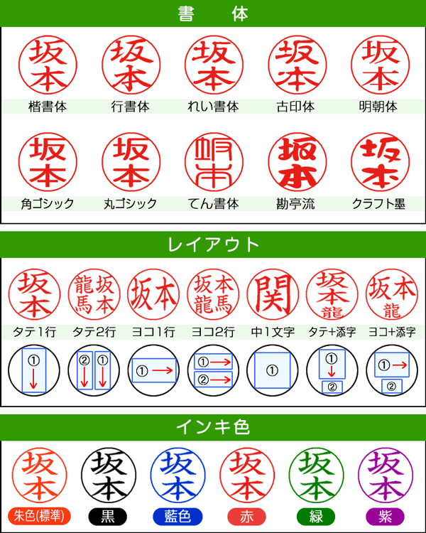 ●ご注文方法 プルボタンでインクカラー・文字の書体・デザインタイプ等をお選びください ●スタンプの文字内容は注文を確定する画面の ・中段の備考欄にて記載してください。 ●補充インクはスタンプご購入時には1本は添付しています ● Adobe Illustratorのデータ入稿 詳細はこちら ●プルボタン以外の書体・フォントのサンプルはこちらです