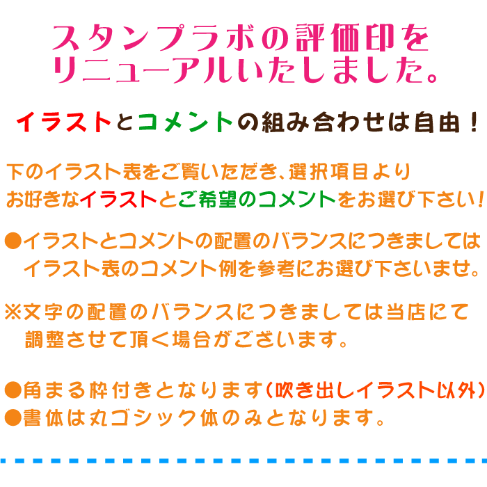 ●ご注文方法 プルボタンでインクカラー・文字の書体・デザインタイプ等をお選びください ●スタンプの文字内容は注文を確定する画面の ・中段の備考欄にて記載してください。 ●JPEG、GIF、及び イラストレータのデータからの製作も可能です ・データ送付について・オリジナル画像のデータはメールにて ・2日以内に別途 info@dejihan.jp宛に添付してご注文時のお名前でお送りください ●補充イン...