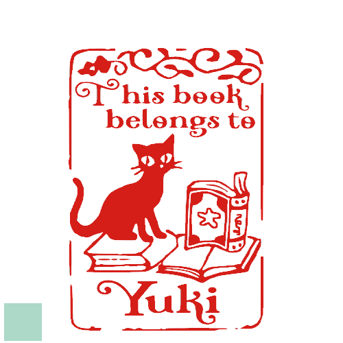 ご希望のイメージをお知らせください。文字はモダン? 読書ネコ 蔵書印 イラスト スタンプ